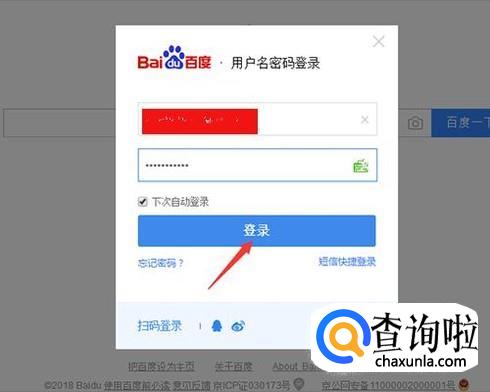 打开电脑登录自己的百度账号,如下图所示;