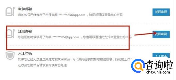 接着选择一个验证方式并点击找回密码,如下图所示。