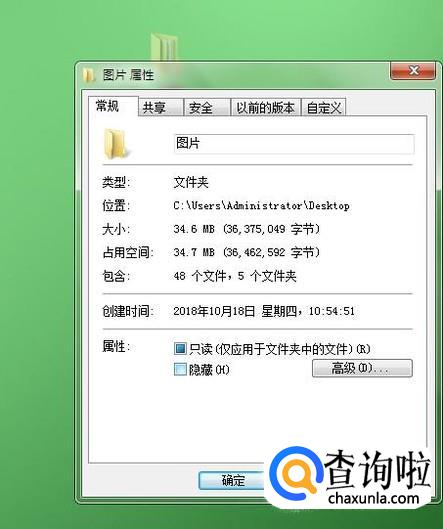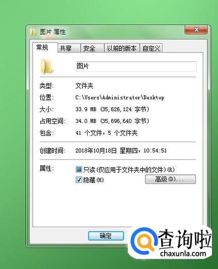 确定后在桌面上选择此文件,右击进入“属性”设置,将下文的“隐藏”勾选去掉后确定。