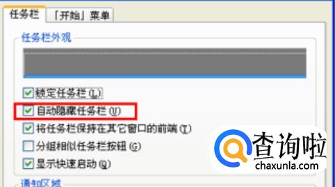 找到属性后打开,并找到常规—自动隐藏任务栏选项,把其前面的勾去掉即可,如下图操作: