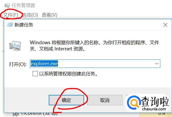 完成上述步骤后新建explorer任务,在任务新建打开选项输入explorer确定即可,之后查看任务栏就会发现之前打开的窗口又恢复了,如下图操作: