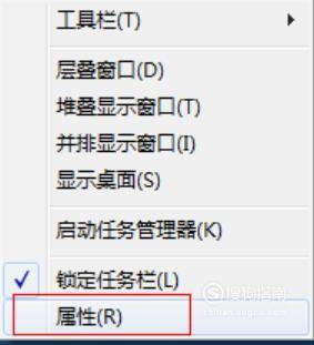 在电脑空白界面找到任务栏,点击右键,找到属性,如下图操作: