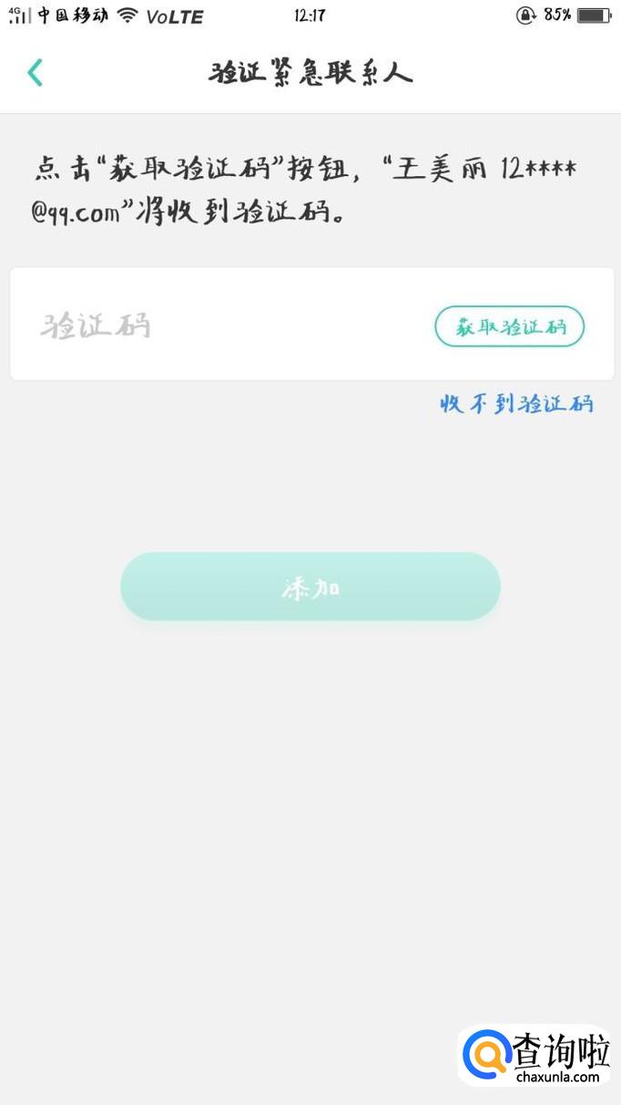 填写好紧急联系人信息后,获取验证码,点击确认添加。