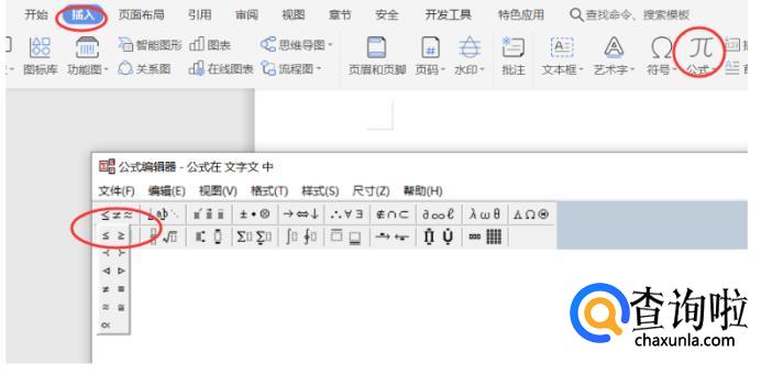 或者我们也可以在“公式”页面中,找到该符号。