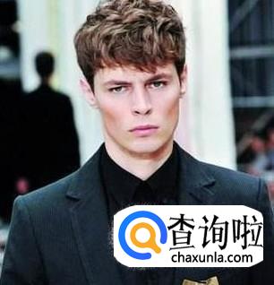 这一款短卷发很适合年轻些的男子选择,头发进行微卷之后梳在头顶,刘海适当遮掩前额,有着修饰脸型的效果,很年轻时尚哦。