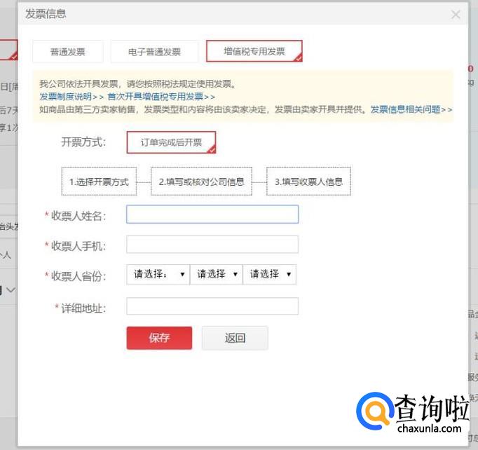 按照页面提示,输入增值税专用发票收票人地址和联系电话等信息,点击提交即可。