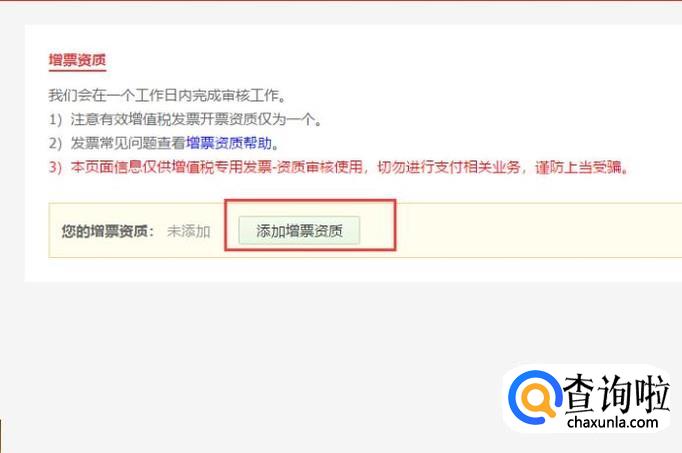 接下来,选择添加增值税专用发票,点击“添加增票资质”按钮。