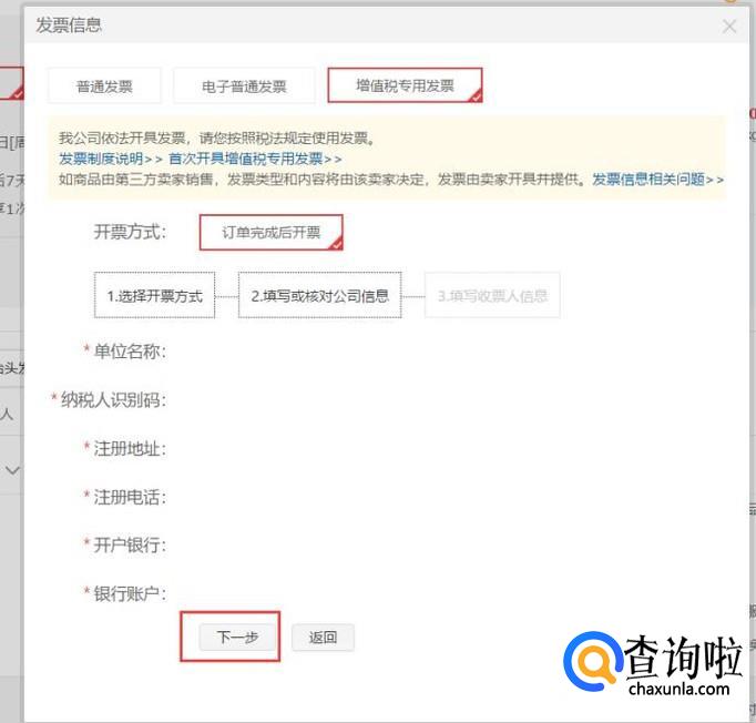 接下来,按照页面流程,选择刚才添加的增值税专用发票信息。