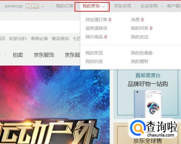 首先,打开京东商城主页面,登录京东账号之后,点击页面顶部“我的京东”选项。