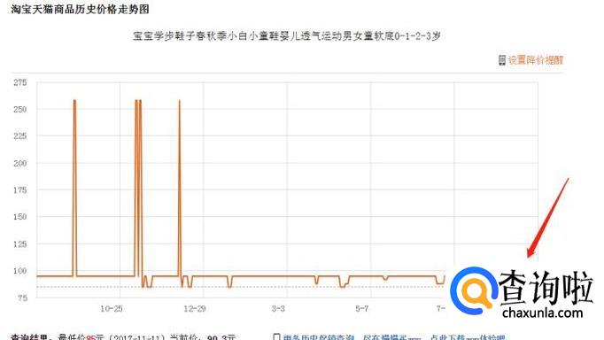 点击搜索后会跳转到该商品的历史价格页面,我们就可以看到价格趋势了。