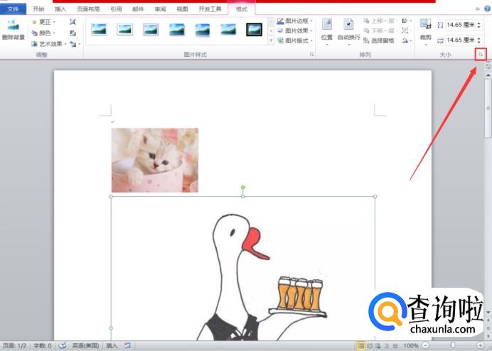 接下来我们点击【格式】选项卡下的大小右下方的小三角符号。