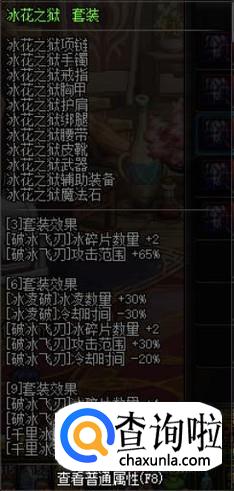 至于装备搭配,各位可以根据自己的出货情况自行搭配,90版本的任何一套SS对于职业都有着非常大的提升。针对于刷图,推荐异界的冰花套,作为冰结CD较短的技能,该套装效果对于破冰的提升,会大大加强刷图的效率。