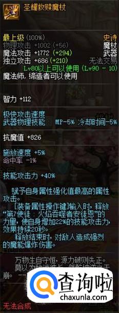 于起源版本新推出的史诗制作系统,可制作的魔杖和法杖,在附加属性上几乎没有任何加成,而且制作周期较长,投入较多,不予推荐。