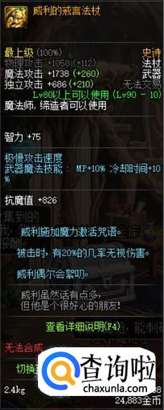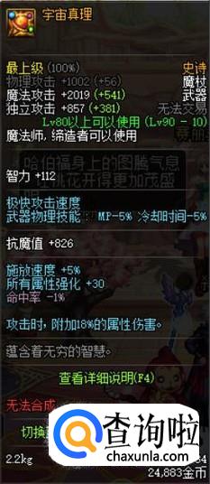 其次90版本SS武器中,推荐魔杖类的宇宙真理,对于身为百分比职业的冰结来说,在属强和附加属性伤害上都有很大的提升。