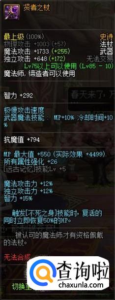 85法杖类,则是推荐贤者之杖,既有属强上的提升,又有魔法攻击力和智力的百分比加成,也是比较适用于身为百分比职业的冰结。
