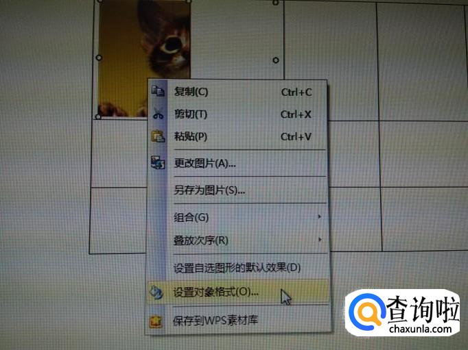 用右键点击照片,在出来的选项中,点击下方的设置对象格式。