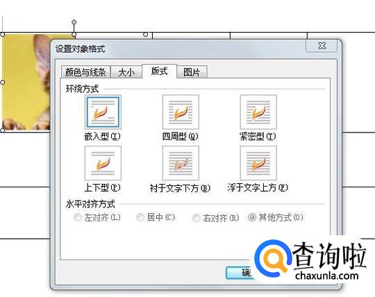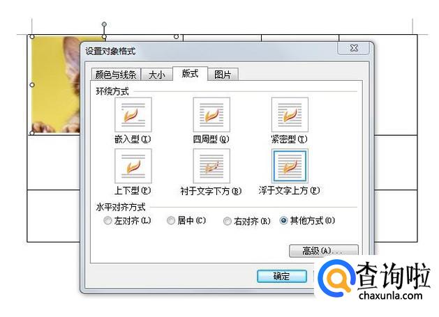 在版式选项中,我们点击浮于文字上方,然后点击确定。