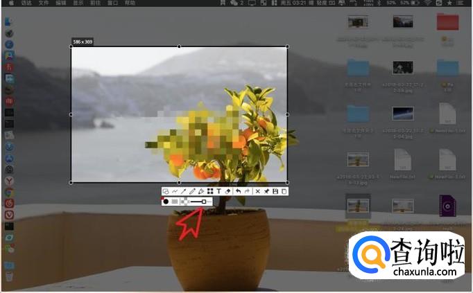 在对图片涂抹马赛克的时候,会需要调整马赛克的大小,则点击软件工具条上面的滚动条,拖动上面的圆点进行调整即可。