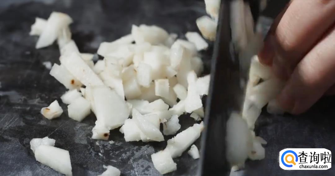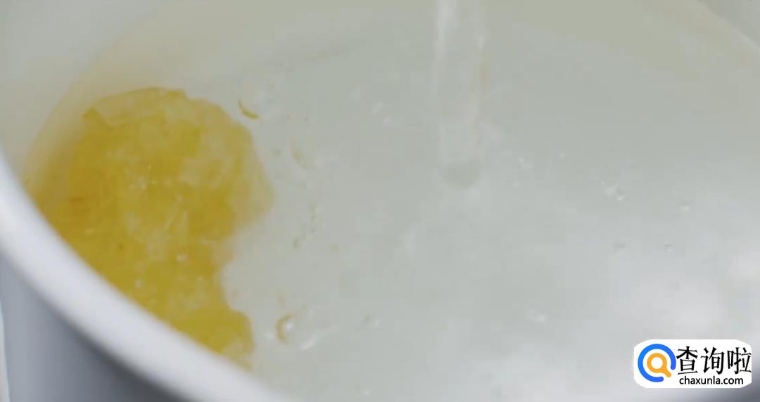 冰糖加水,煮至融化,放入马蹄熬煮。