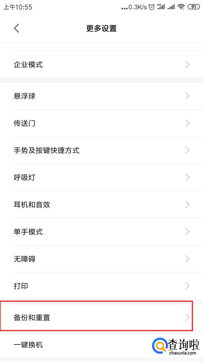找到【备份和重置】,点开。