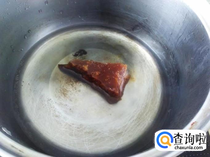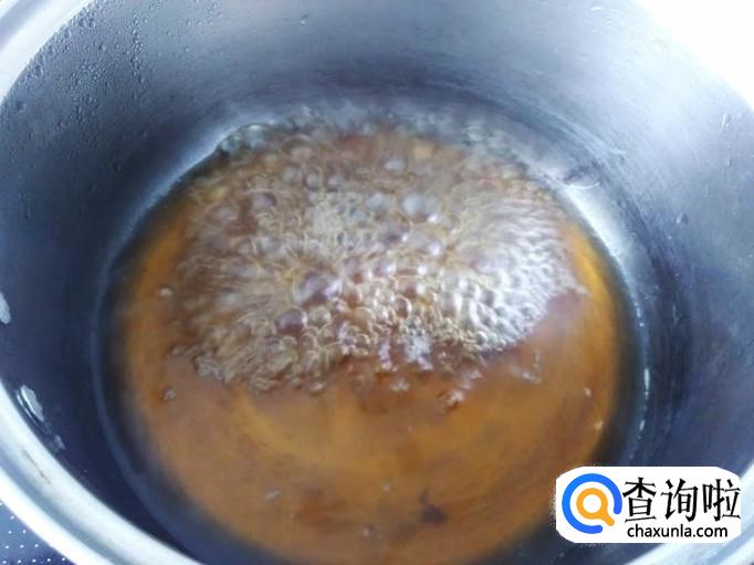 锅装1碗水放红糖进去煮融化。