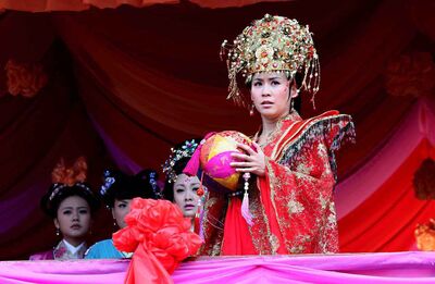 王宝钏的父亲决定用抛绣球的办法来招亲,他想着随便一个人也比是仆人的薛平贵优秀。但是,王宝钏故意把绣球抛给了薛平贵。王宝钏坚持嫁给薛平贵,王宝钏的父亲气的与王宝钏决裂,断绝父女关系。