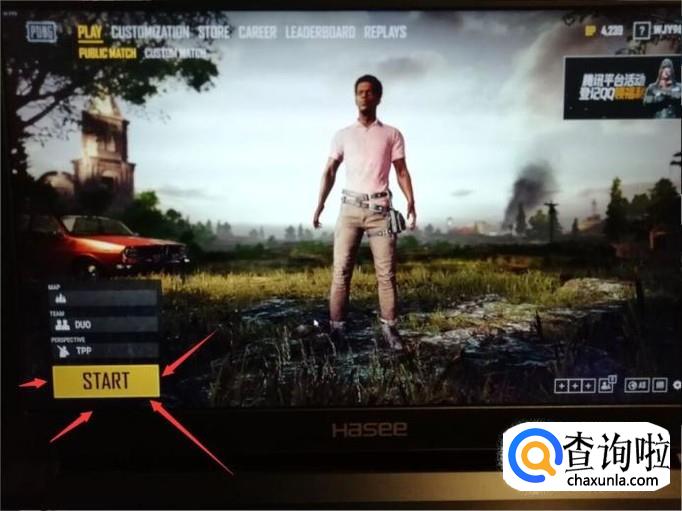 进入吃鸡游戏界面后,点击准备,也就是START,等待进入游戏。