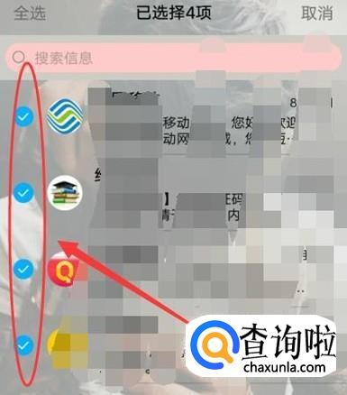 点击之后,勾选想要清理掉的短信,如图所示。