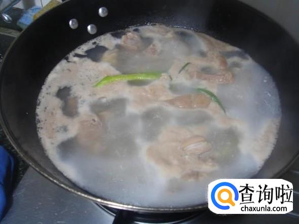 因为炖的时间比较久,炖的时候需要一次性加入足量的水,放入大葱和姜片,为了汤汁香浓最小火好炖上2个小时以上。