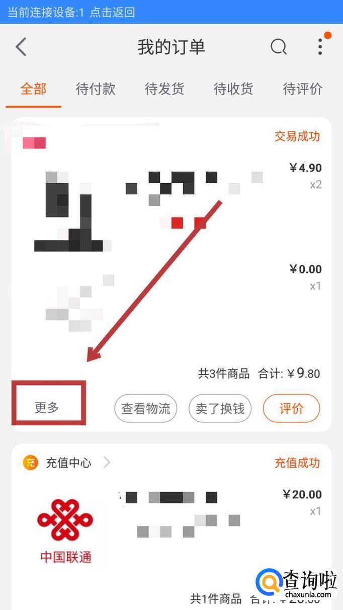 然后找到你想要开发票的订单,在左下角找到【更多】,点击进入。
