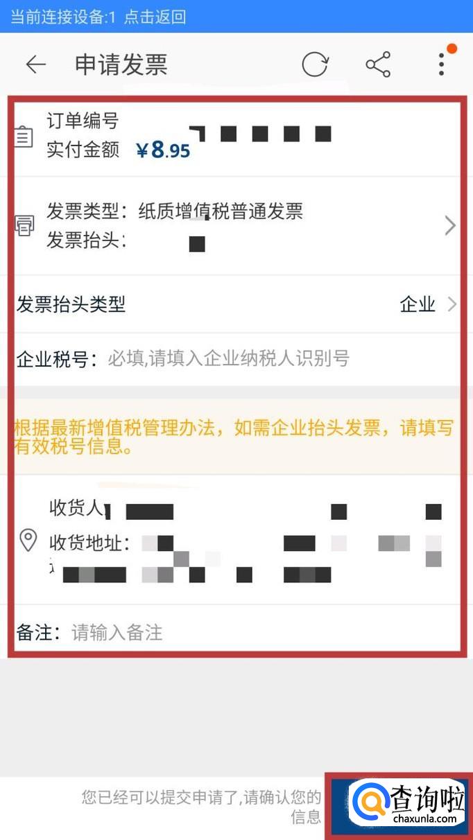 然后我们输入相关的发票信息和收取发票的地址和等信息就可以了。