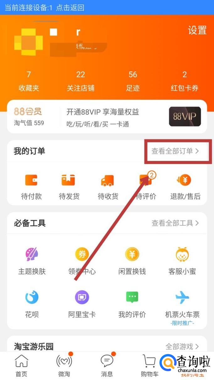 然后在【我的订单】选项卡右侧找到【查看全部订单】,如图所示。