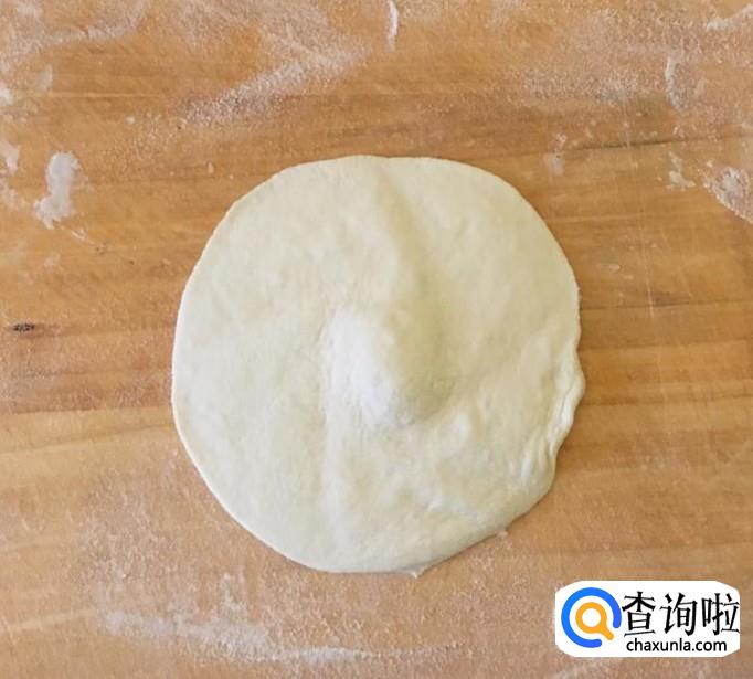 案板铺撒一层干面粉把发酵好的面团反复的揉至内部没有明显的孔洞,搓成长条切成大小均匀的面剂子再挨个揉一次,然后擀成中间厚边缘薄的包子皮。