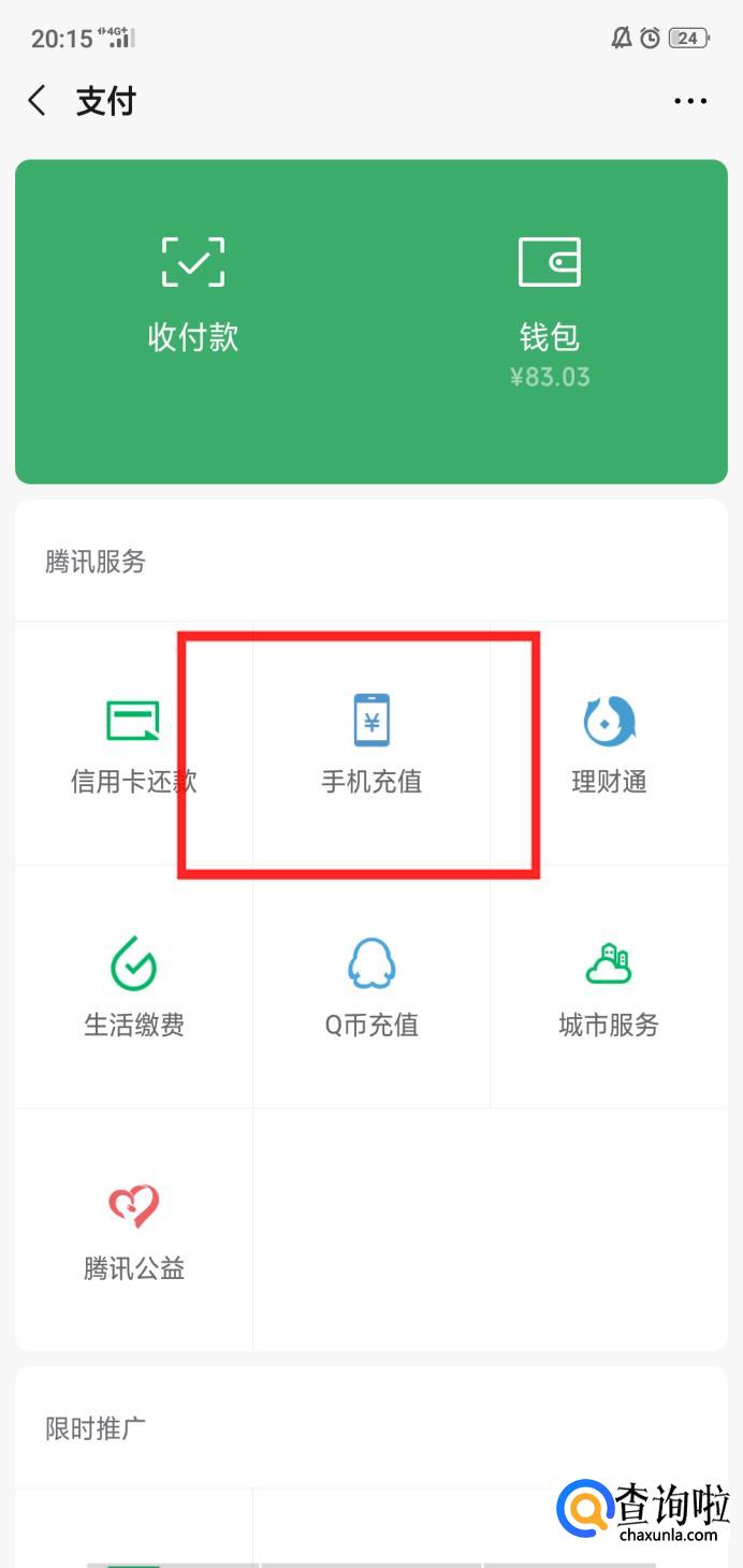 在支付页面点击手机充值,进入其界面。
