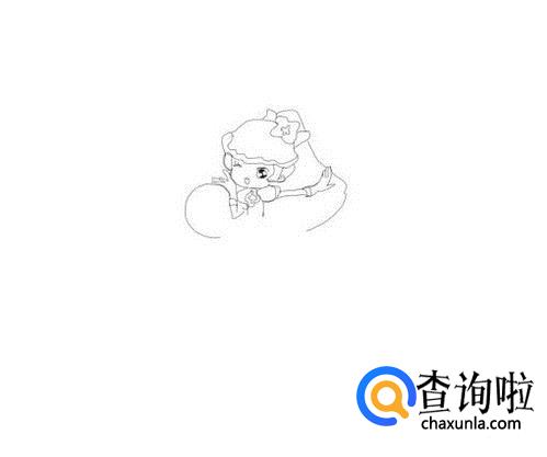 再在头部的下面画出小花仙千韩的两只胳膊,然后再画出垂下来的头发,如图所示: