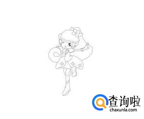 最后我们再在小花仙千韩的裙子下面画出小花仙千韩的两条腿及脚部,这样小花仙千韩就画好了,如图所示: