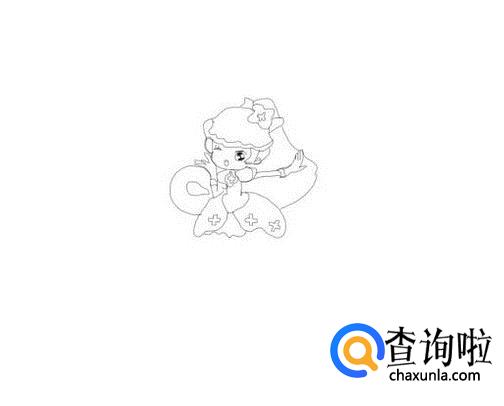 再在两只胳膊的下面画出小花仙千韩的身体,然后再画出小花仙千韩的裙子,如图所示: