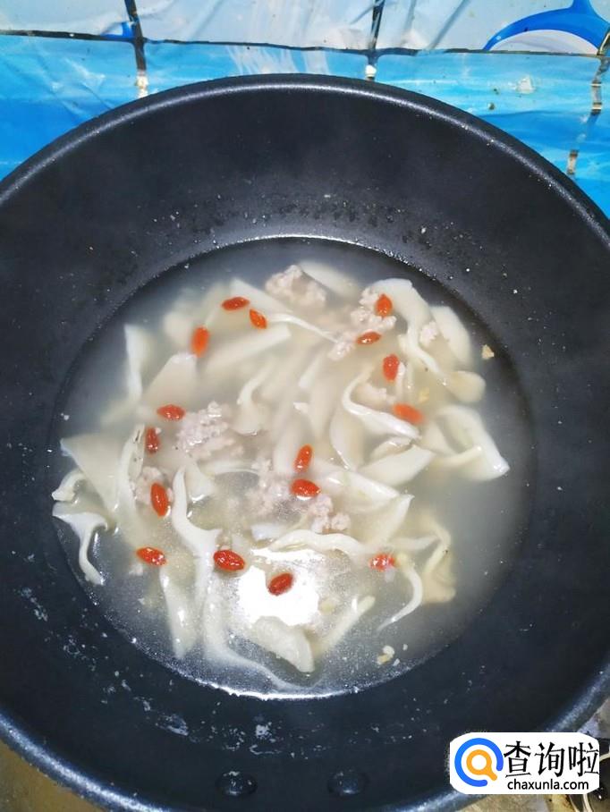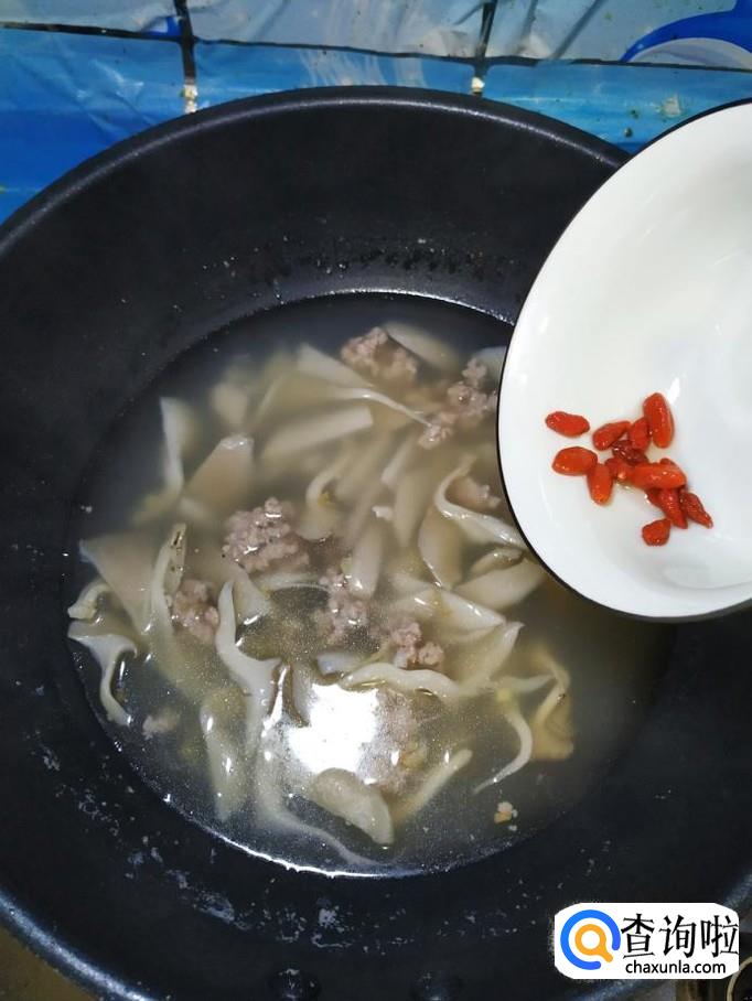 提前将枸杞子用清水泡一下,将枸杞子也放入锅中,再煮5分钟。