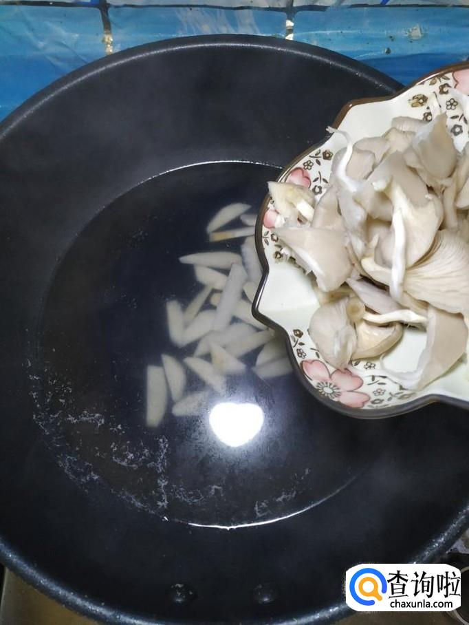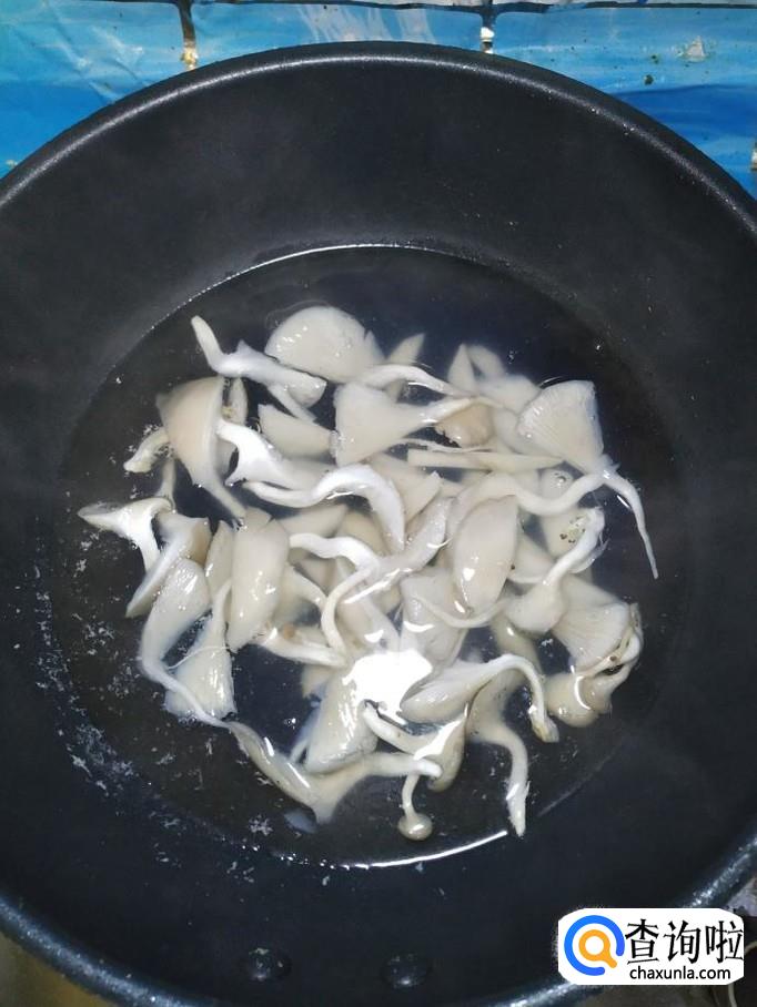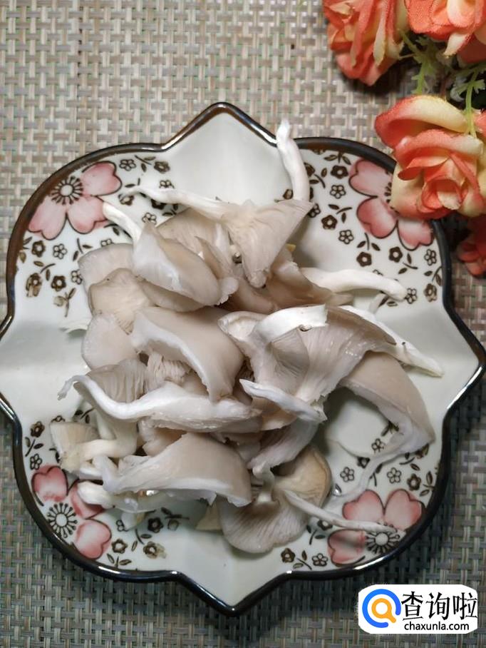 准备适量新鲜的蘑菇,用清水洗净,然后用手撕成条,放入盘子备用。