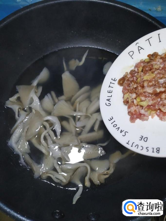 将腌好的肉末放入锅中,搅拌一下。