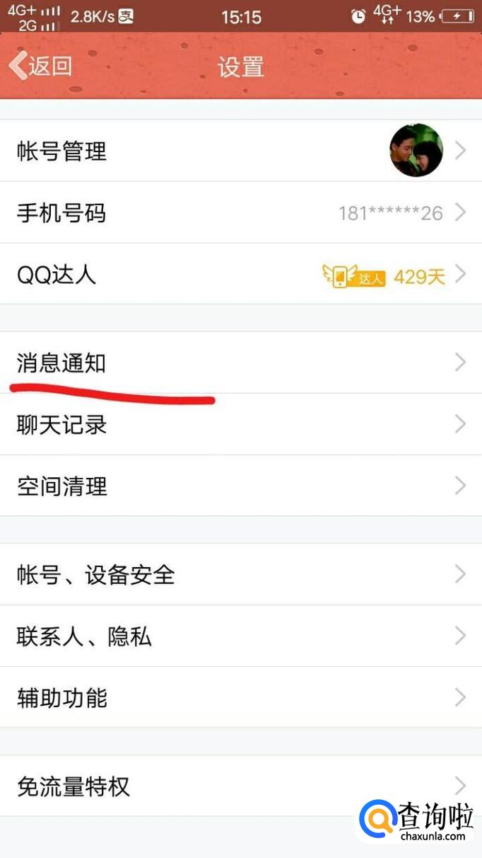 接着,我们点击设置,然后再点击消息通知