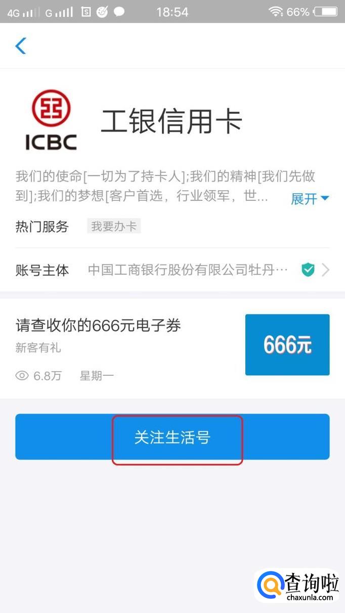 关注之后,就会进入工银信用卡生活号(在支付宝“朋友”里面,可以看到该生活号),我们看到底部有“我要办卡”选项,我们点击一下。