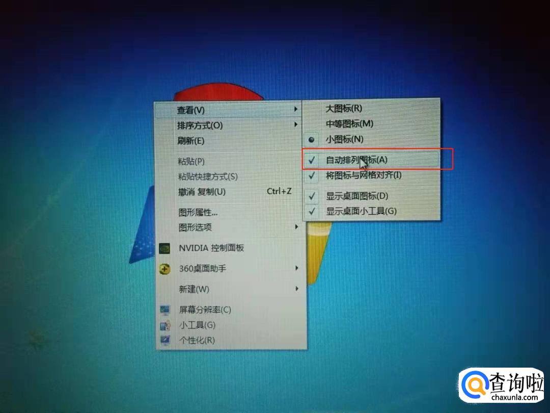 方法二:点击右键选择【查看】-【自动排列图标】。