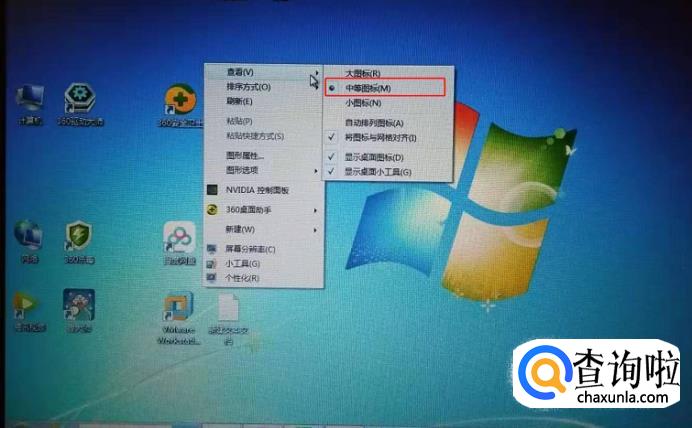 方法一:点击鼠标右键选择【查看】-【大图标】,【小图标】,【中等图标】根据自己的实际情况选择图标大小。