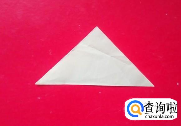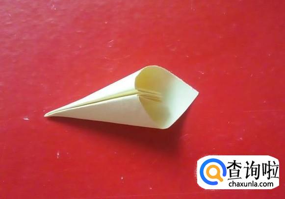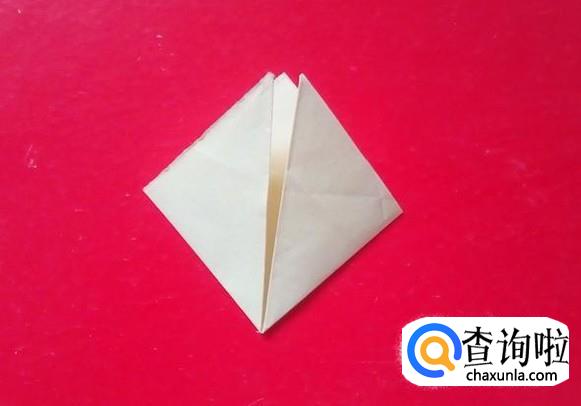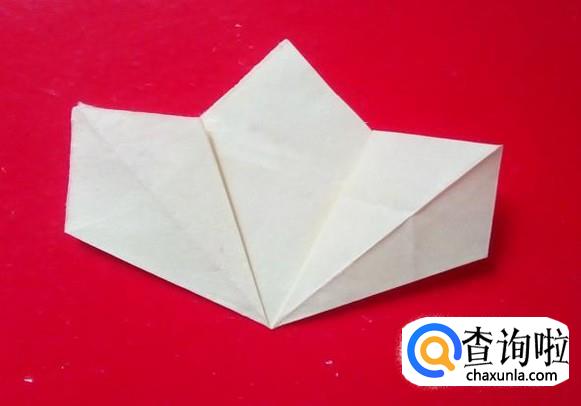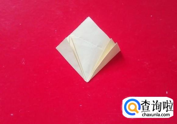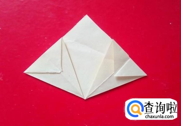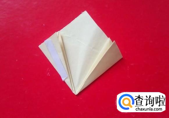 把上步向外翻折的部分打开,然后再从中缝沿折痕向下压实。