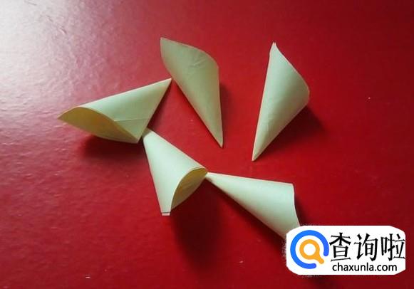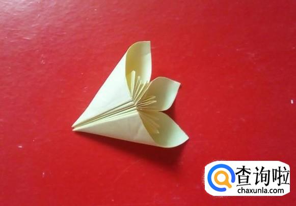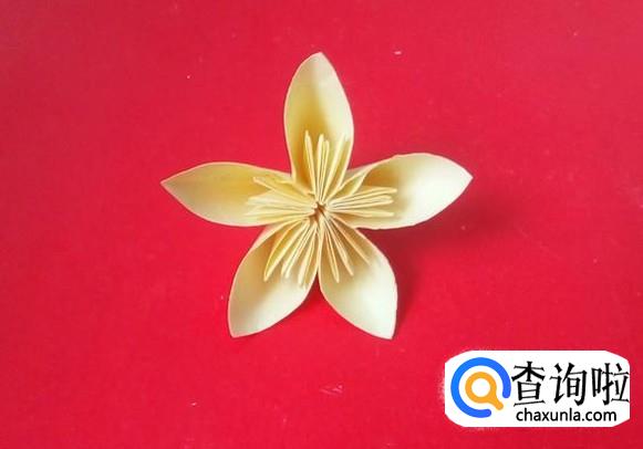 最后把花瓣的两侧分别用双面胶粘在一起,五瓣樱花就折好了。