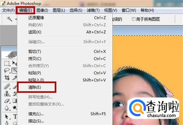 之后我们点击“编辑”→“清除”,即可即可将多余的选区清除掉,如图所示。