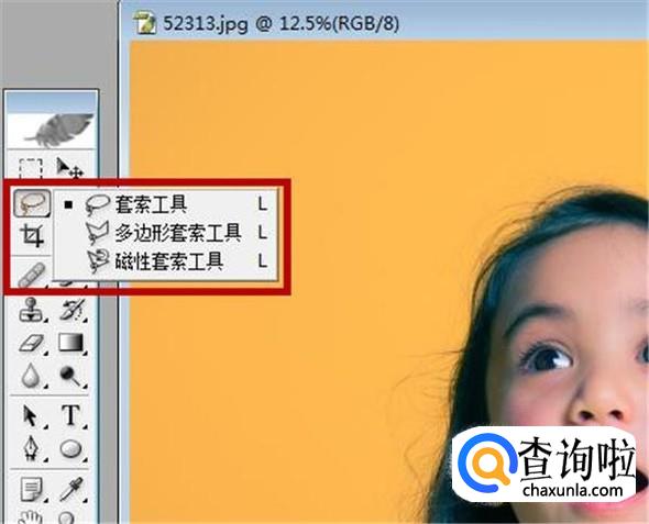 之后我们在工具栏中点击套索工具,我们选择套索工具、多边形套索工具、磁性套索工具,中合适的进行抠图,如图所示。