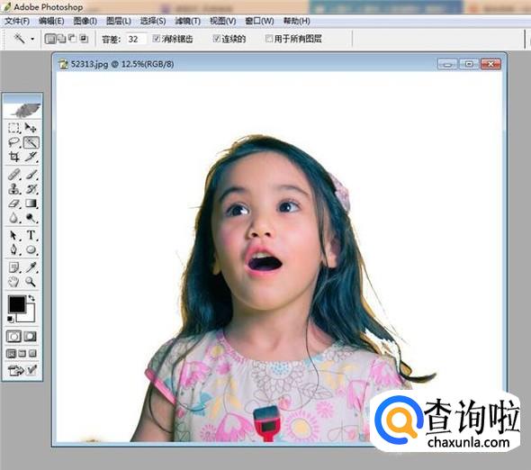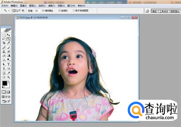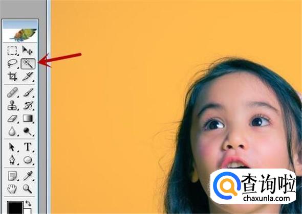 我们实现上面的选区抠图还可以点击工具栏中的魔棒工具,如图所示。