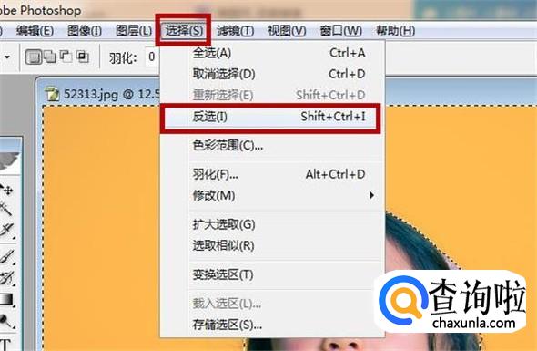 之后我们点击“选择”→“反选”,或者按Shift+Ctrl+I进行反选,如图所示。
